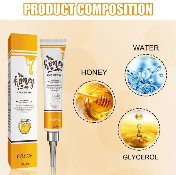 With daily application, you’ll notice a visible difference in your under-eye area. Puffiness decreases, dark circles fade, and fine lines become less noticeable. As a result, your eyes appear brighter, smoother, and more youthful. Moreover, the natural honey extract ensures continuous nourishment for soft, glowing skin.